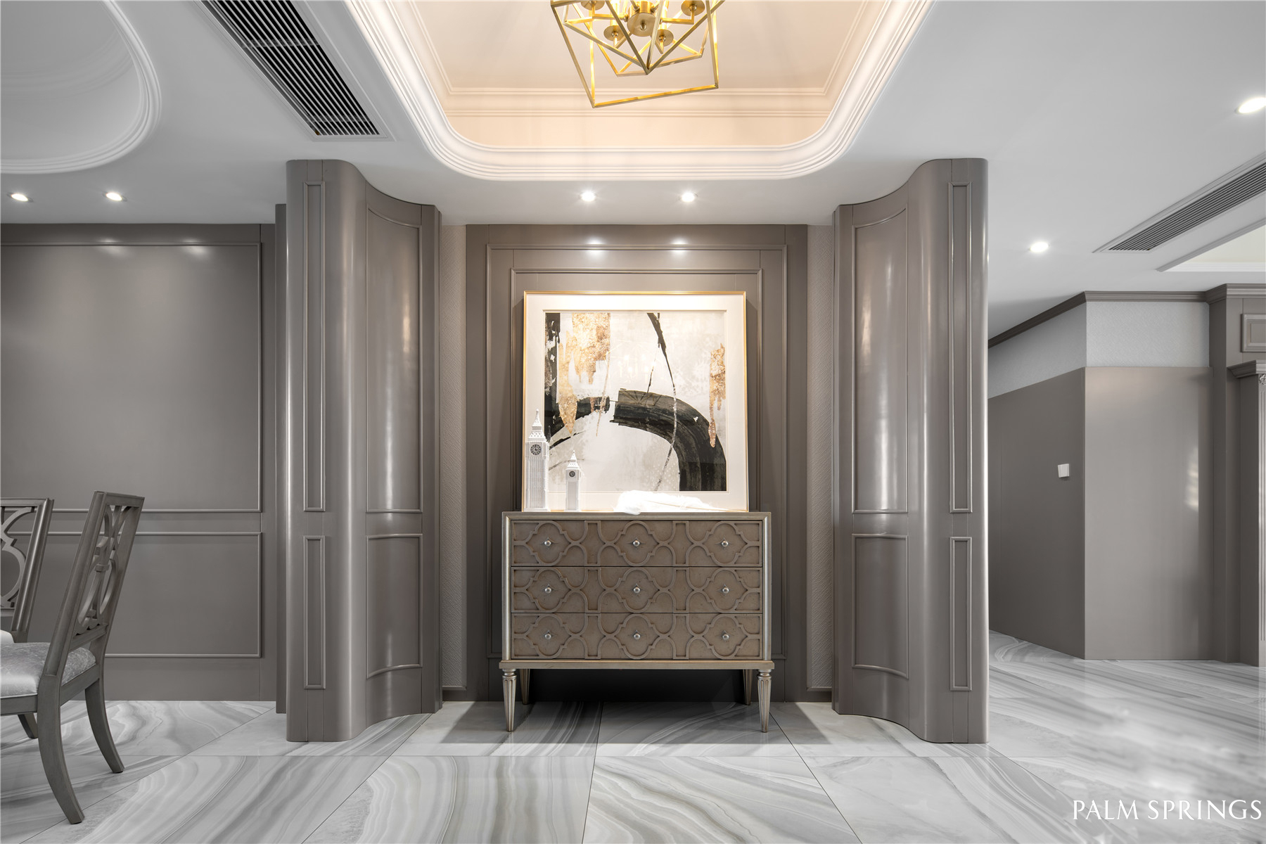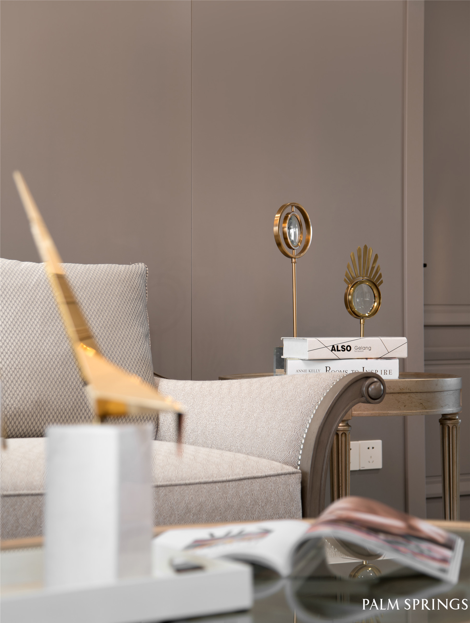 灰调的空间,比彩色多一分稳重,比黑色多一分温柔。全屋将色彩上加以灰度的处理,予人纯净、自由且舒缓的感受。家具的选择上,从罗马柱式方圆有型的精致桌腿,到茶几抽屉面板上别致小巧的星型拉手,无一不体现着设计师对细节的苛求。
